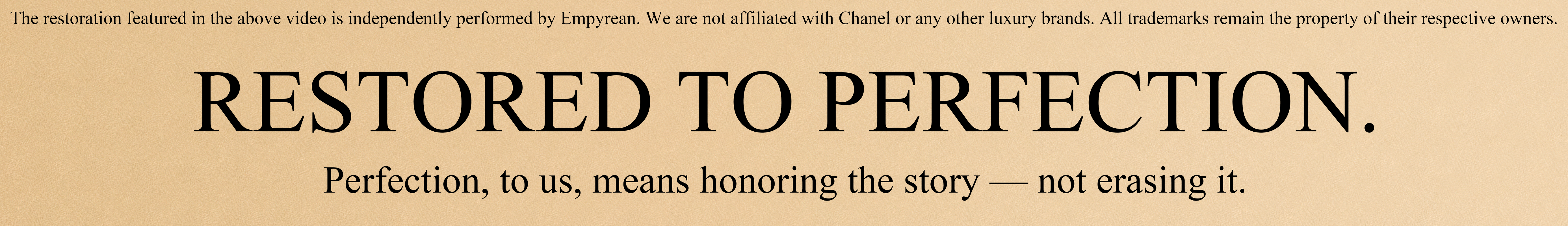 Empyrean began with a heartfelt mission: to honor and preserve the stories behind beautiful things. We believe every bag has a soul — a trace of someone’s journey — and our role isn’t to erase it, but to gently restore it with care so its story may continue. Each piece is revived by hand, with craftsmanship that reflects years of dedication and deep respect for legacy. We don’t claim to return items to “brand new” — because that is impossible and would erase what makes them special. Instead, we embrace character, restore with integrity, and share every detail with full honesty. Whether you’re curious about a style, wondering about condition, or see if a special discount might be possible for a meaningful moment, we’re always here to help. No pressure, no rush — just connection.